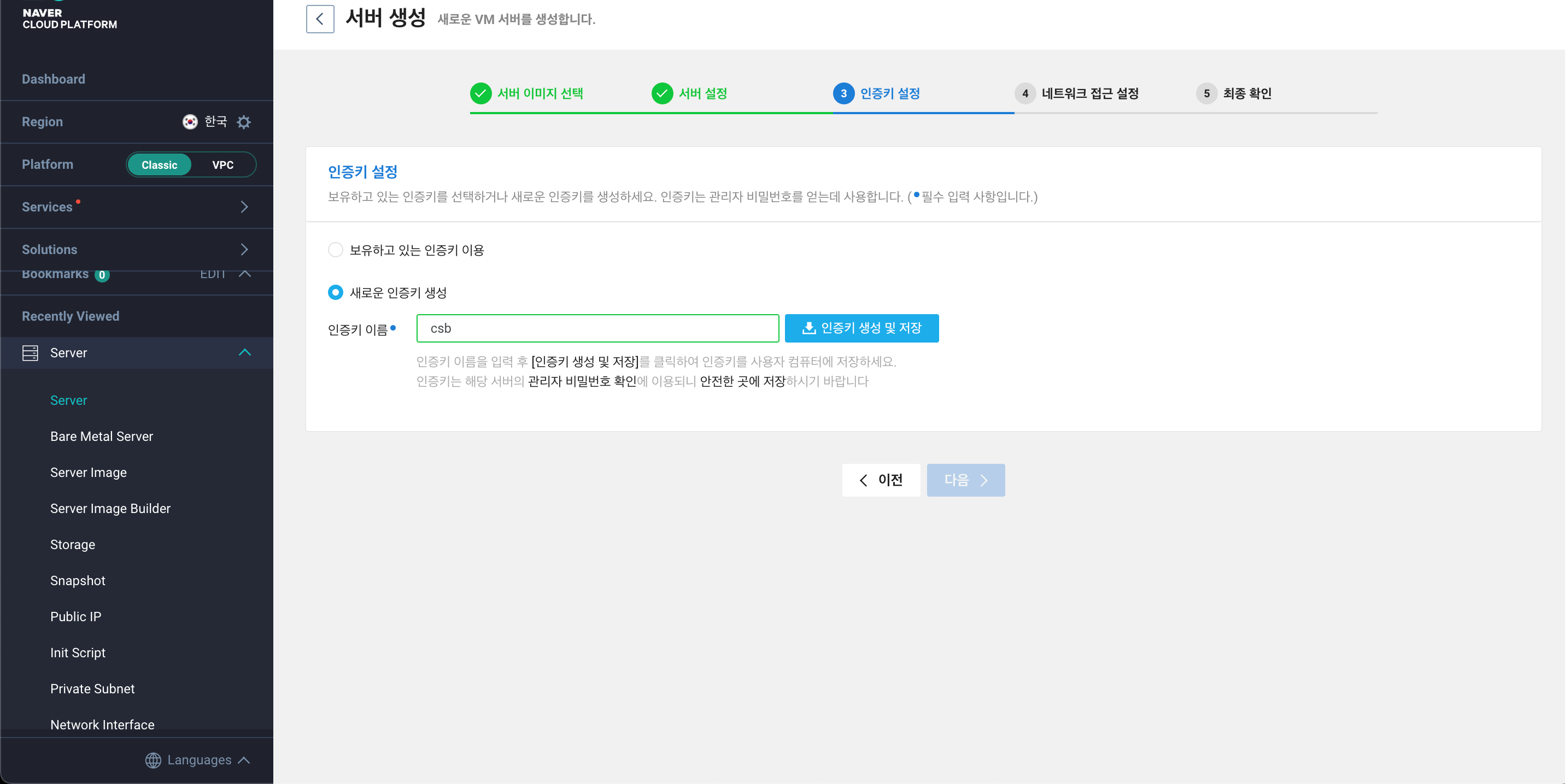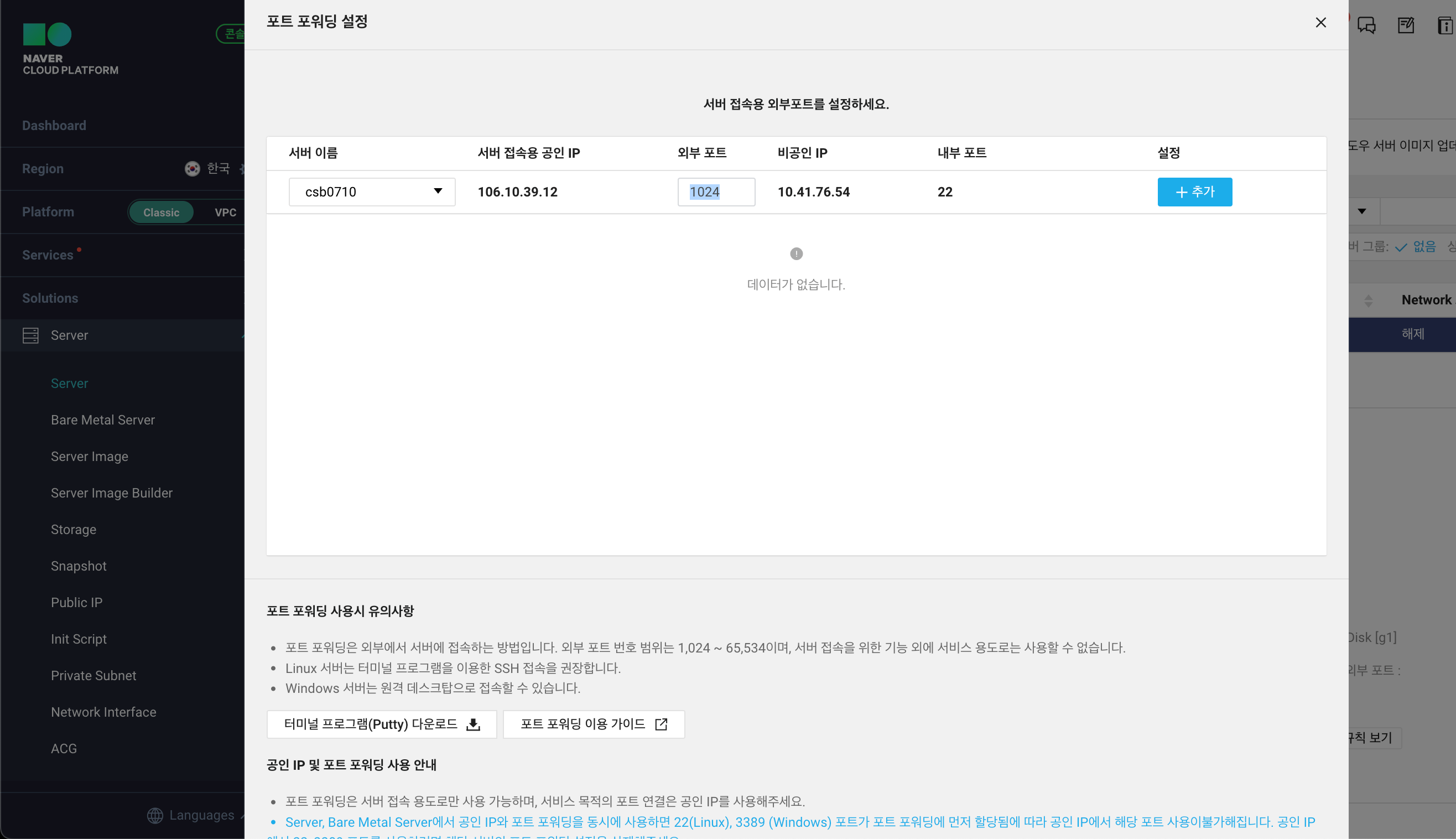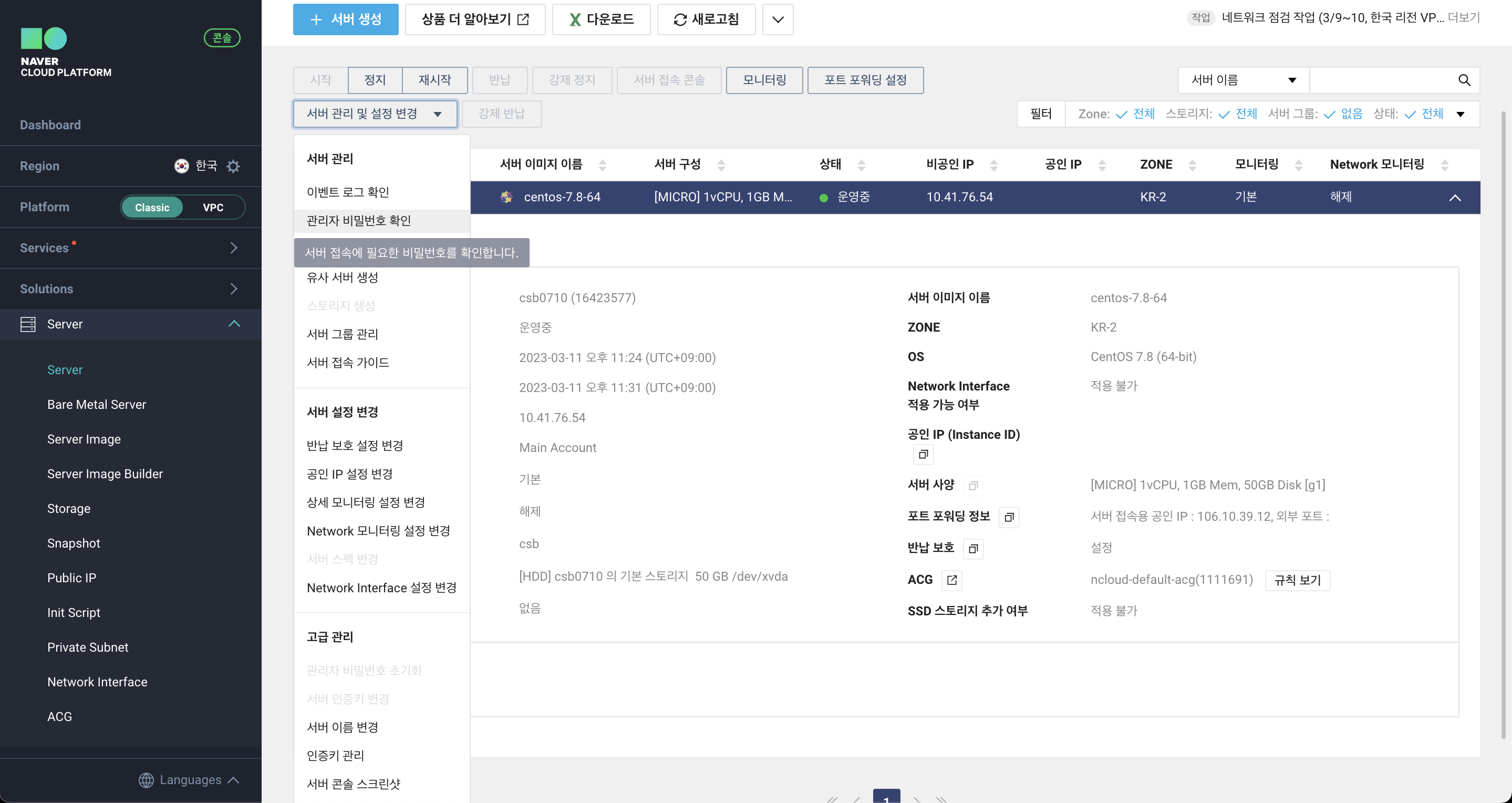 1. https://console.ncloud.com/dashboard 에 접속 후 서버 생성