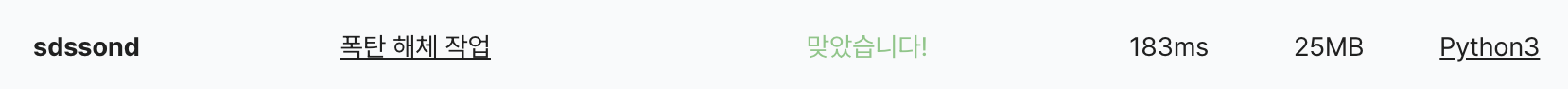- 이번 문제의 키포인트는 모든 폭탄의 해체 시간이 1로 동일하다는 것이다.