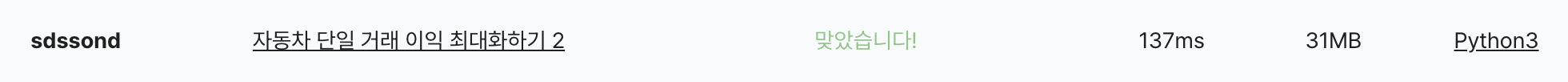 - 반대로 현재 시점의 가격이 더 높다면 현재 가장 비싼 자동차의 이득 측정을 멈추고, 현재 시점의 자동차 가격으로 업데이트하여 반복한다.