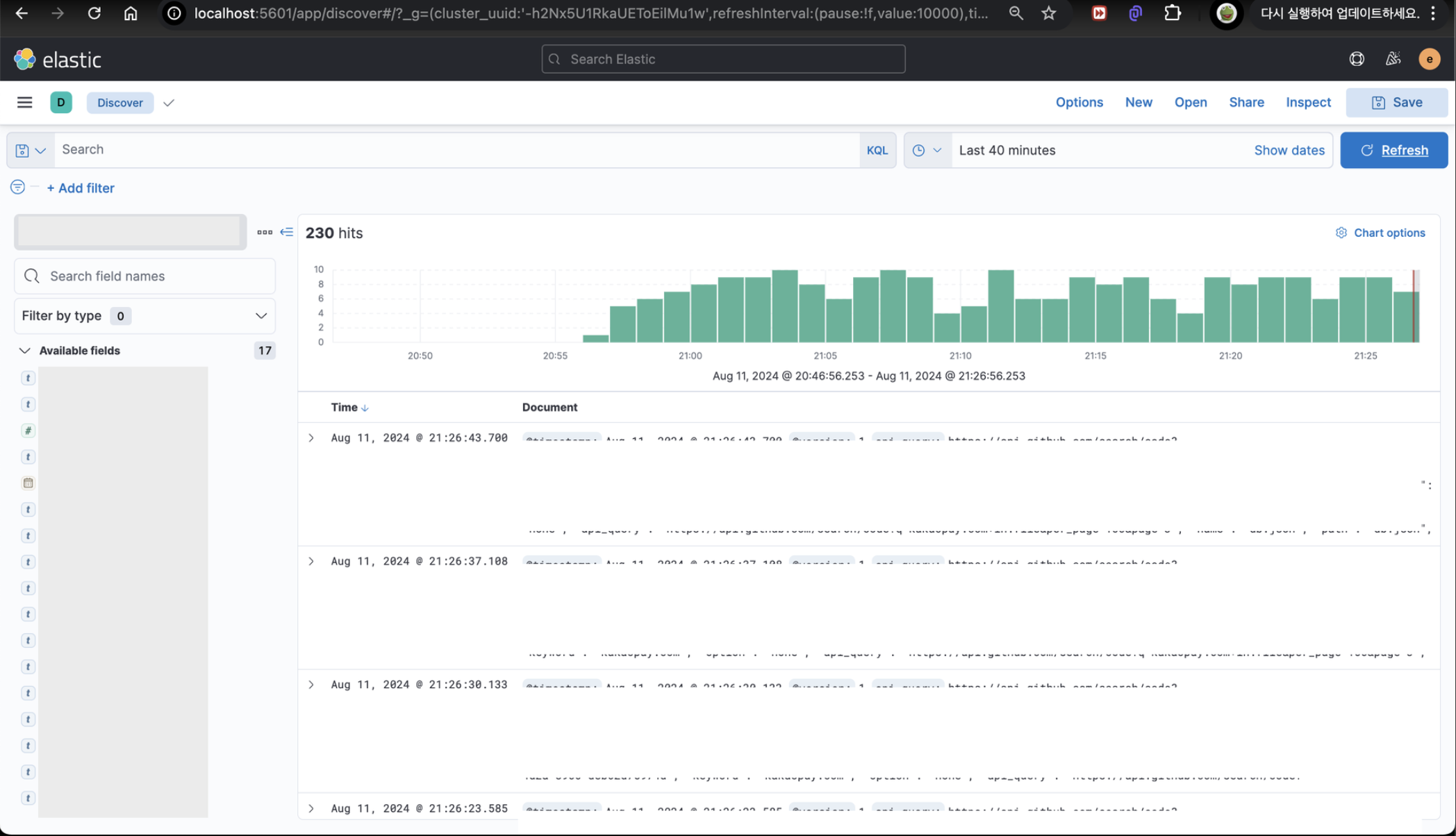 - 시간 범위를 설정하여 현재까지 수집한 데이터를 눈으로 확인 가능