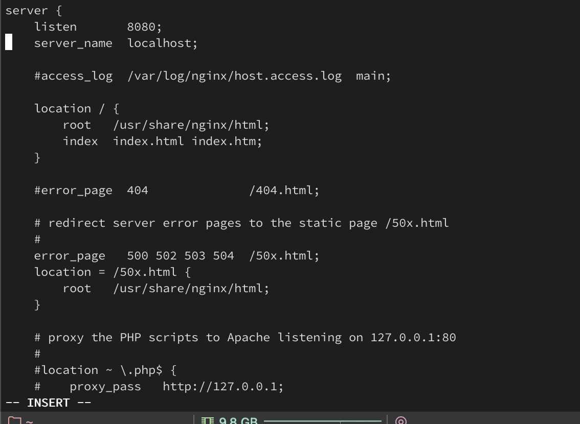 yum 저장소에 nginx의 라이브러리가 존재하지 않기 때문에 vi를 이용해서 nginx.repo 저장소를 추가