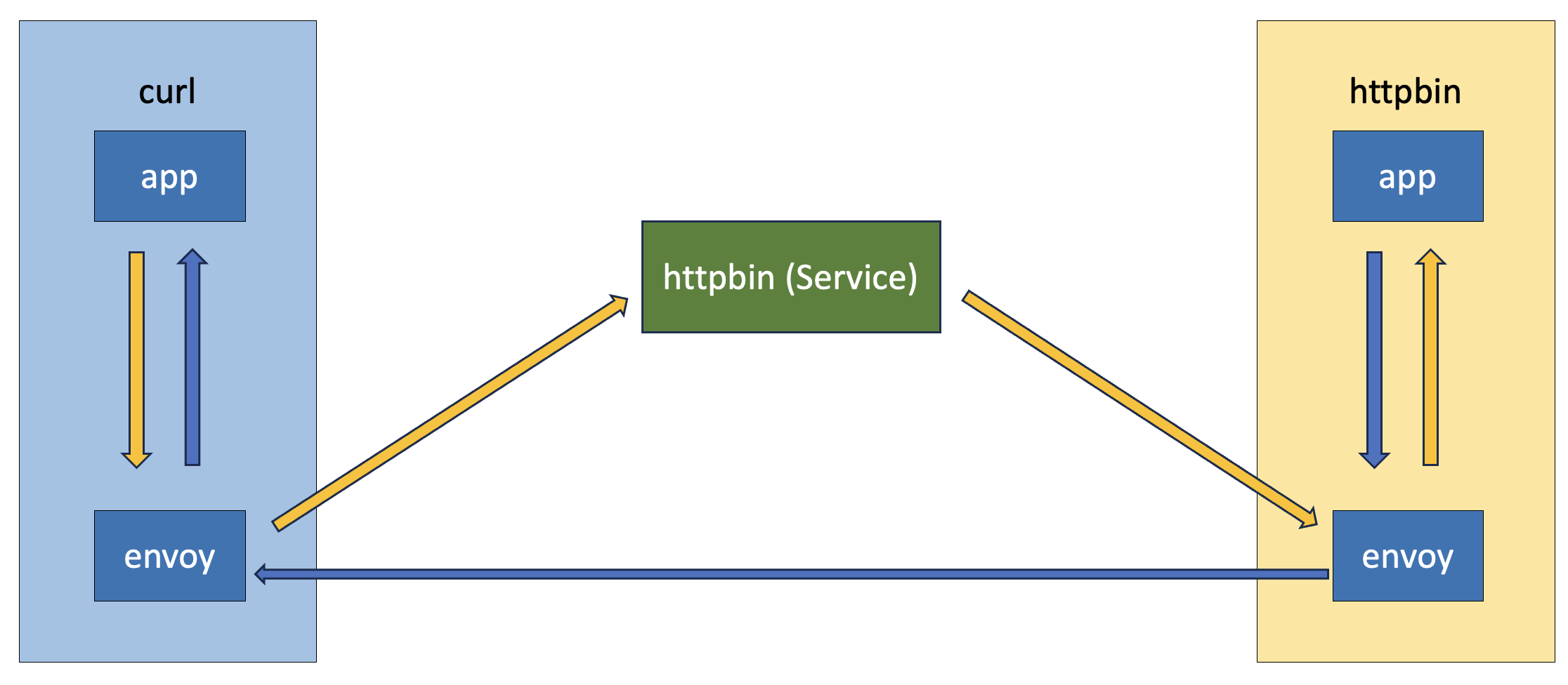 즉, 클라이언트(curl)은 httpbin의 Service로 요청을 하게 되고,